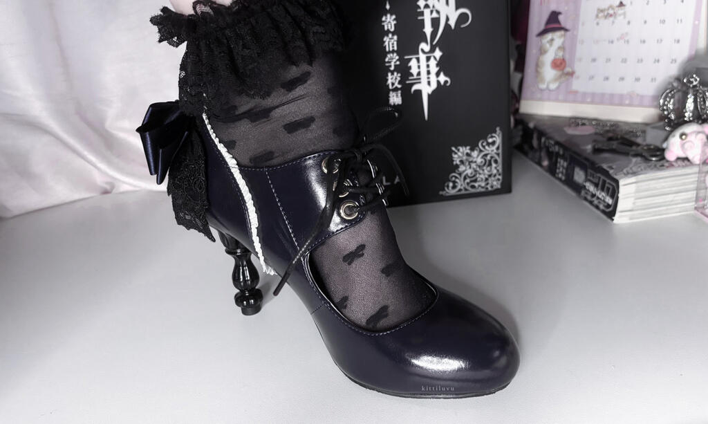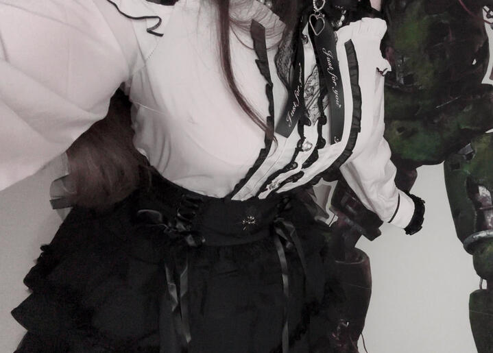 with a sickly charm she takes the stage. complexion as pale as a ghost under the spotlight, every black lace and ribbon outlines her form. will you watch her take centre stage?