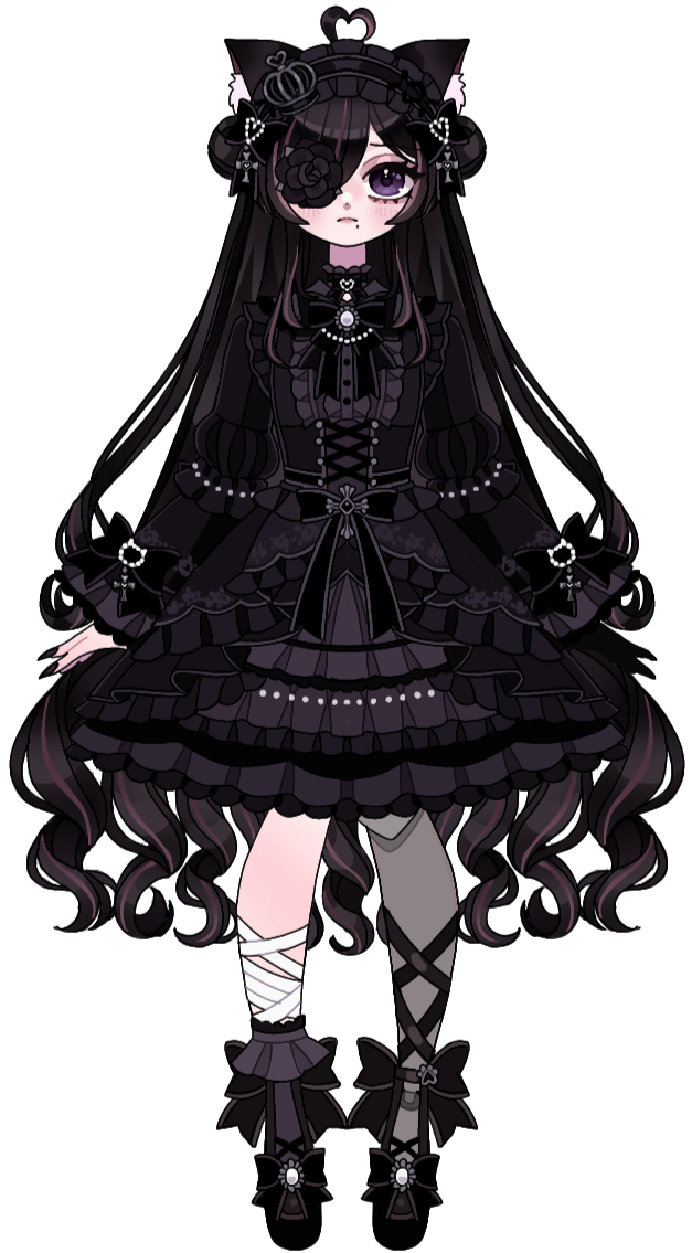 a noble of... mysterious background, it refers to itself as a "princess" and expects the same of those addressing her. though she has a high status from blood, she looks unlike what you'd think. skin as pale as porcelain, eyes distant they just stare through you, she carries an unnerving aura. a real porcelain leg is attached by her leg, the heartshape socket clicking harmonizing with the clicks from her ever-worn high heels. her eyepatch and singular glove are NOT to be removed, hiding a secret she took to death..she brings an aire of elegance, clearly a high standard kind of girl. she's adorned by brilliant sapphires, bright pearls tracing the intricate designs affixed together in her coords and sets. the air around her grows cold, black figures dancing in the edges of your vision when near her. you can't tell if they're just curious or hostile, but they keep their distance nonetheless.