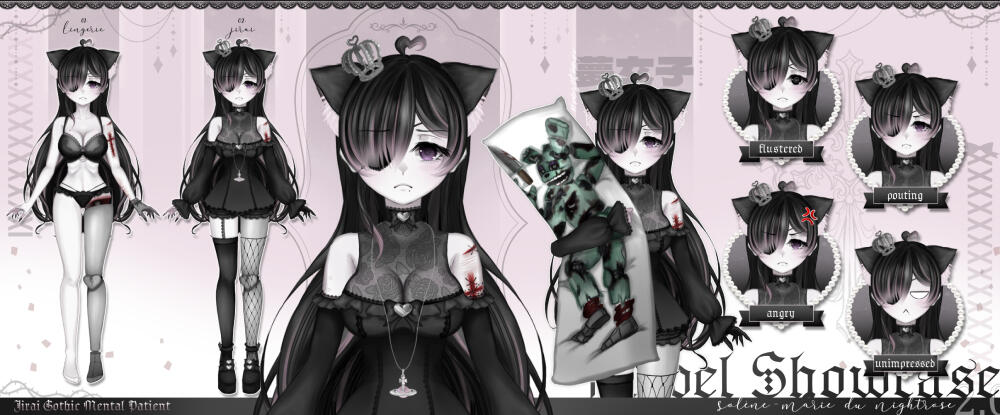 i'm a jirai gothic nekojin vtuber, idol, vlogger, artist, and more !!i love horror and gothic media, my favourites being dbd, outlast, corpse party, kuroshitsuji, vanitas no carte, and american mcgee alice. i also love rhythm games, like twst, love live, and d4dj.